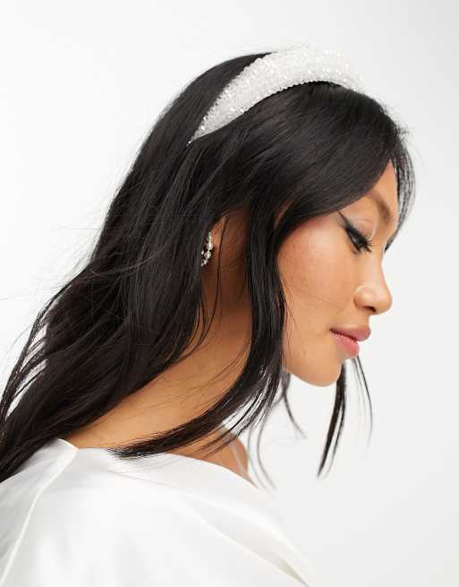 Y.A.S Bridal – Biała opaska na głowę zdobiona kryształkami na całej powierzchni
