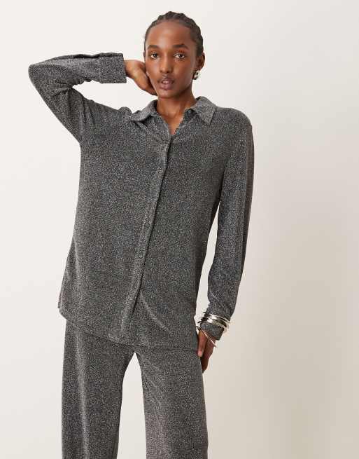 YAS – Czarna brokatowa koszula z długimi rękawami, część zestawu