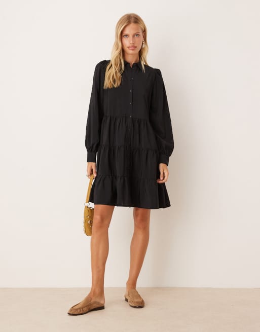 YAS – Czarna warstwowa sukienka koszulowa mini z długimi rękawami