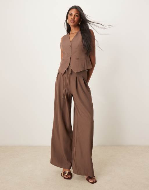 YAS – Kawowe spodnie z podwyższonym stanem i szerokimi nogawkami, część zestawu