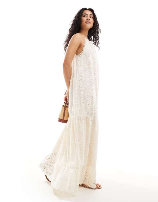 Y.A.S – Kremowa sukienka maxi z angielskim haftem