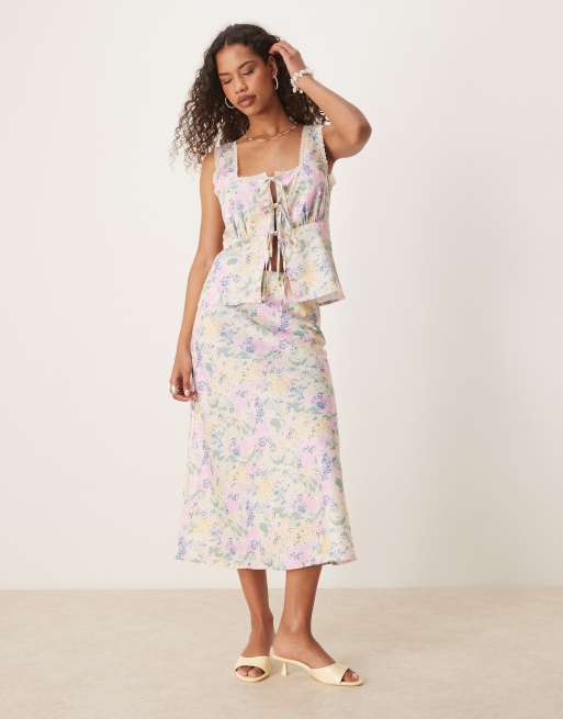 YAS – Satynowa spódnica midi w drobny kwiatowy wzór, część zestawu