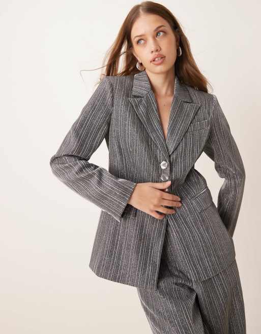 YAS – Srebrna dopasowana marynarka garniturowa z brokatem, część zestawu