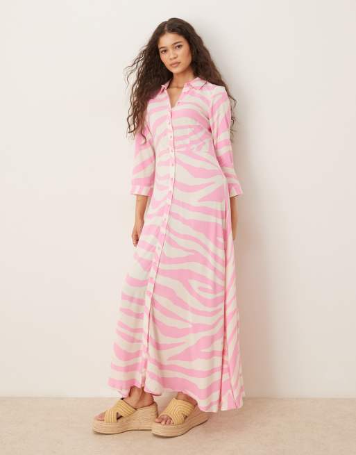 YAS – Sukienka koszulowa maxi oversize w różowe paski zebry
