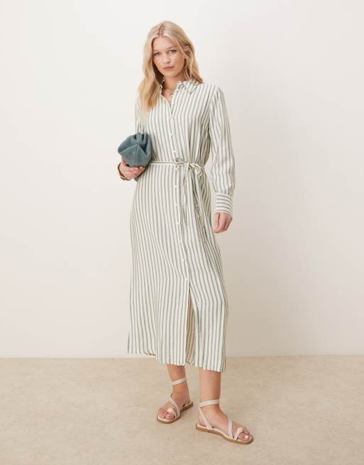YAS – Sukienka koszulowa maxi w zielono-kremowe paski z wiązaniem