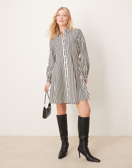 YAS – Sukienka koszulowa mini ze zwiewnym dołem w czarno-kremowe paski
