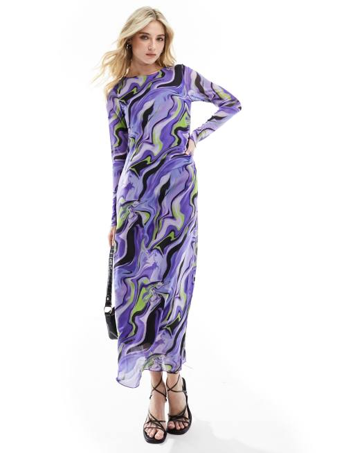 Y.A.S – Sukienka midi bodycon w fioletowy falisty wzór