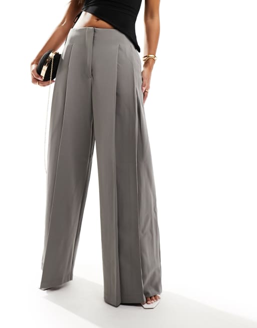 Y.A.S – Szare spodnie z szerokimi nogawkami i zakładkami