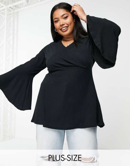 Yours – Czarny kopertowy top z rozkloszowanymi rękawami