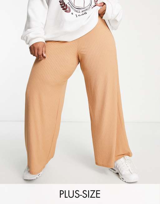 Yours Exclusive – Camelowe prążkowane spodnie z szerokimi nogawkami