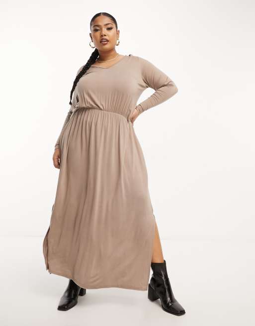 Yours Exclusive – Luźna sukienka midi z długimi rękawami w kolorze mocha