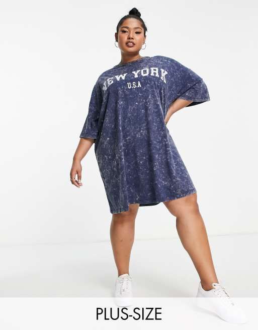Yours – Granatowa sukienka oversize z nadrukiem „New York” i efektem sprania
