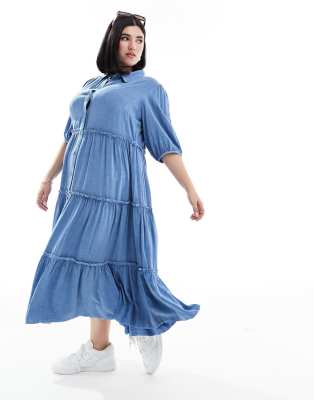 Yours – Jasnoniebieska warstwowa sukienka maxi zapinana na guziki