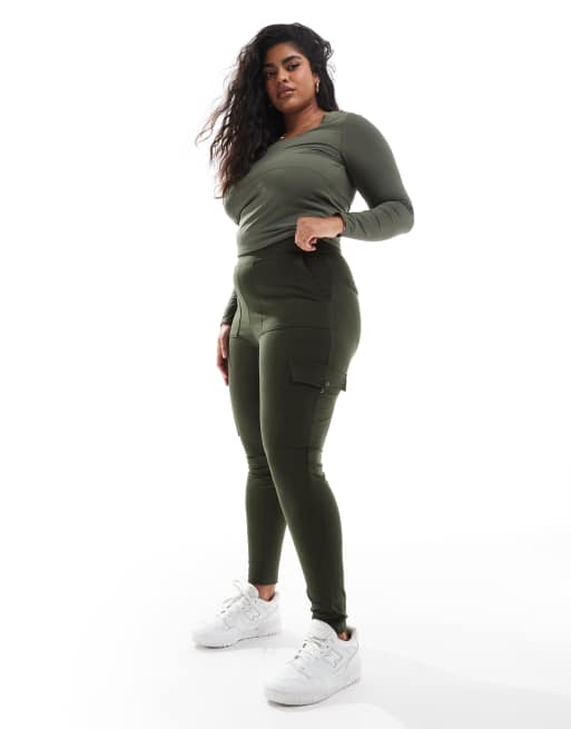 Yours – Legginsy z ponte z dużymi kieszeniami cargo w kolorze khaki