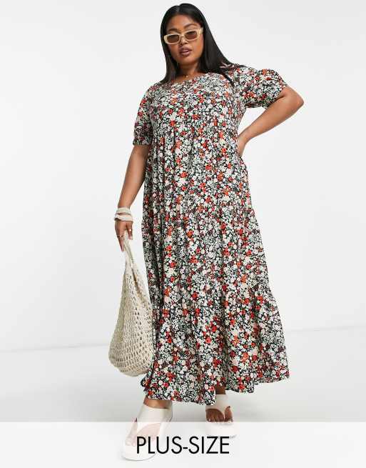 Yours – Luźna warstwowa sukienka w kolorze czerwonym w kwiaty