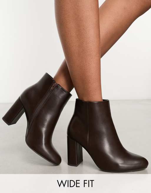 Yours Wide Fit – Brązowe buty do kostki na obcasie z noskami w szpic