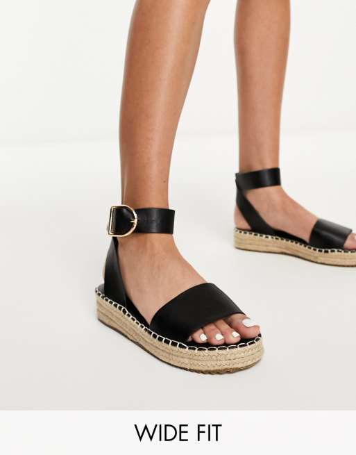 Yours – Wide Fit – Czarne espadryle na płaskiej platformie