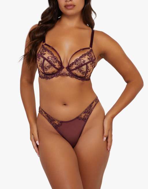 Playful Promises Cassia embroidery lingerie set in ruby red