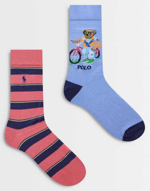 Polo Ralph Lauren 2 pack bear socks in light blue and red stripe