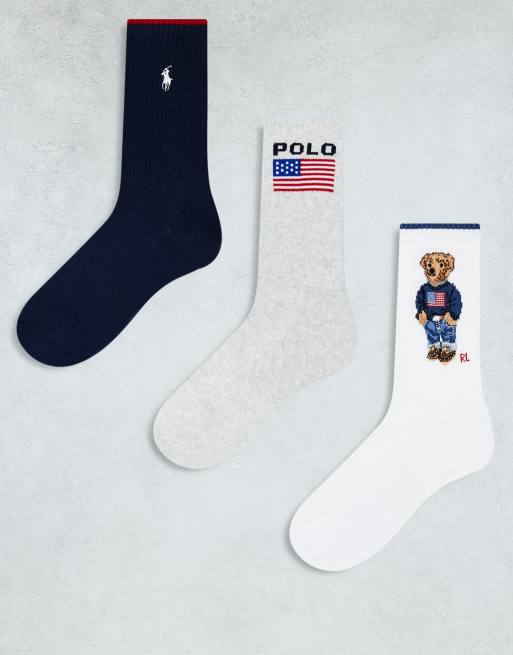 Polo Ralph Lauren 3-pack bear, logo and flag socks in multi