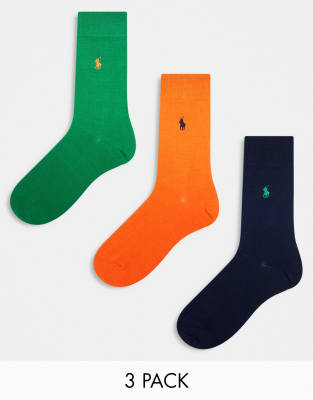 Polo Ralph Lauren 3 pack mercerized cotton socks with logo in orange green navy