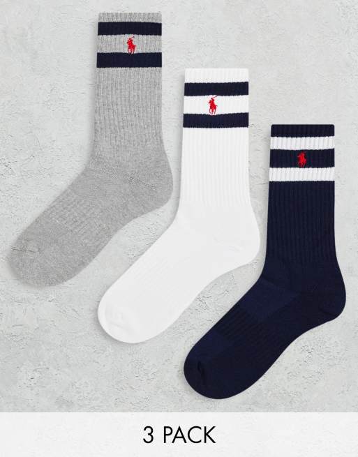 Polo Ralph Lauren 3 pack socks in white, grey, navy with pony stripe