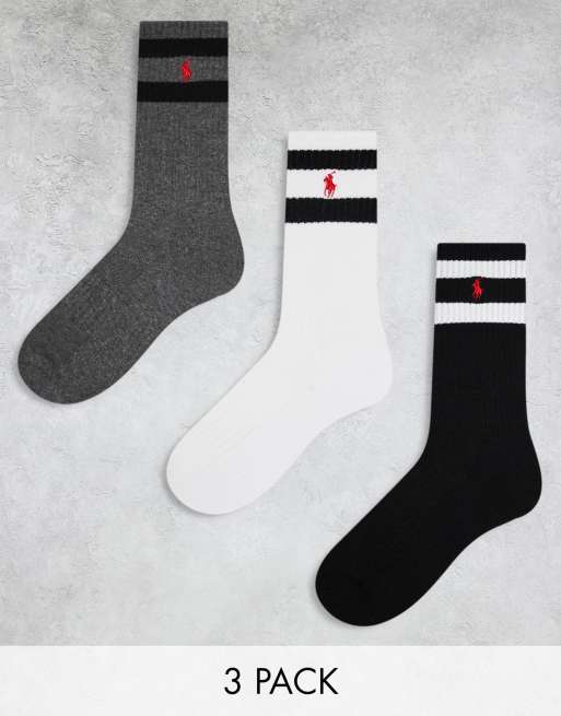 Polo Ralph Lauren 3 pack sport socks with stripe in black grey white