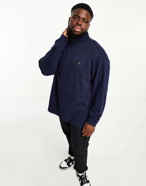 Polo Ralph Lauren Big & Tall multi icon logo half zip double knit sweatshirt in navy