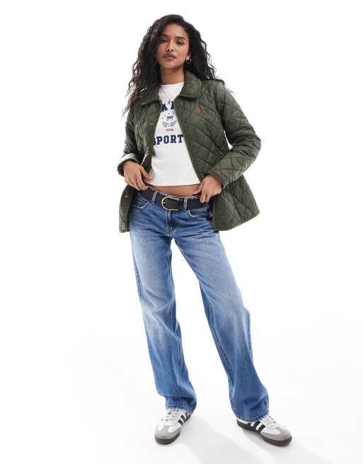 Polo Ralph Lauren dimond quilted jacket with logo in khaki