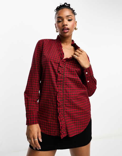 Polo Ralph Lauren gingham check ruffle detail shirt in red