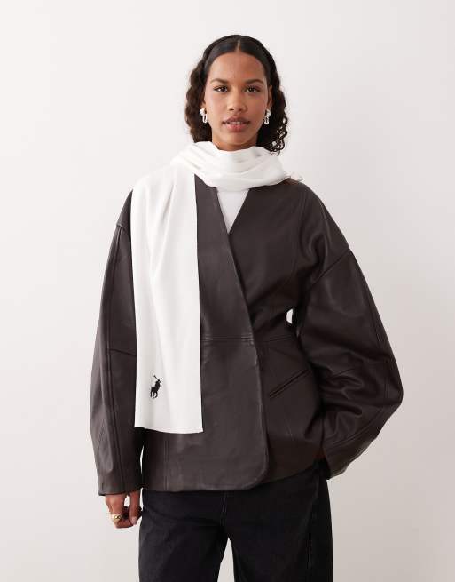 Polo Ralph Lauren icon logo cotton knit scarf in off white and black