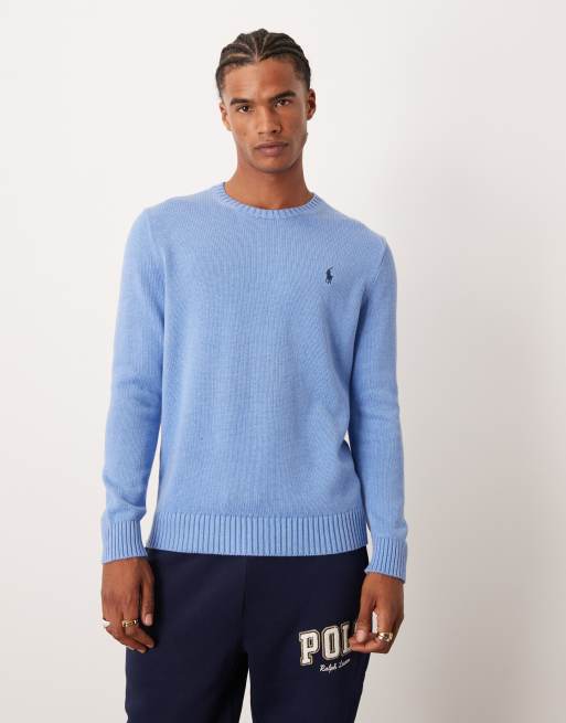Polo Ralph Lauren icon logo heavyweight cotton knit jumper in soft blue