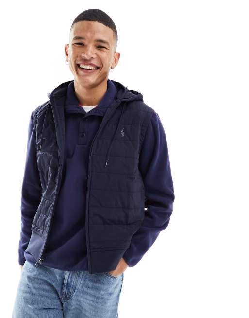 Polo Ralph Lauren icon logo hybrid quilted hooded vest in navy