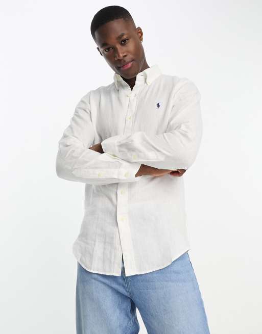Polo Ralph Lauren icon logo linen shirt custom fit in white
