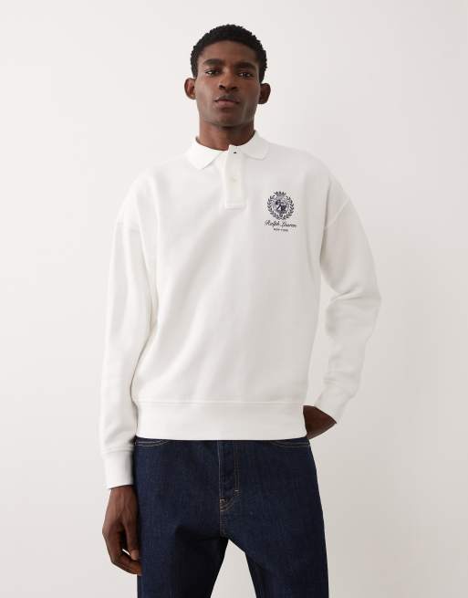Polo Ralph Lauren icon logo long sleeve collared sweatshirt in white