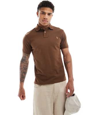 Polo Ralph Lauren icon logo slim fit pique polo in brown
