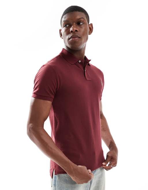 Polo Ralph Lauren icon logo slim fit pique polo in burgundy