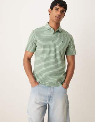 Polo Ralph Lauren icon logo stripe pima cotton polo in light green/white