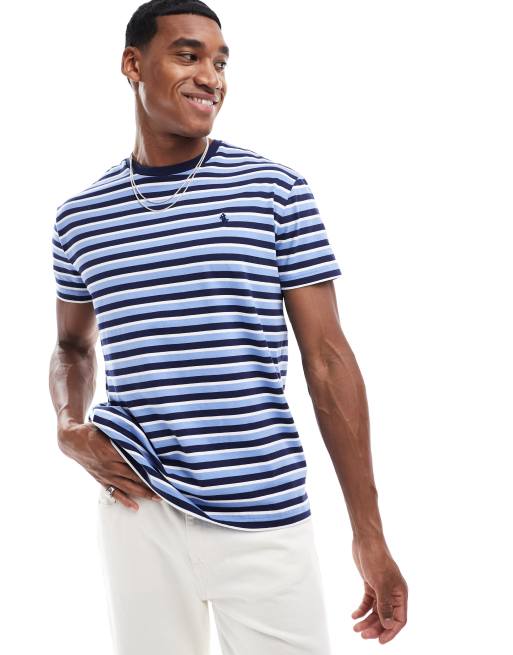 Polo Ralph Lauren icon logo stripe t-shirt in mid blue