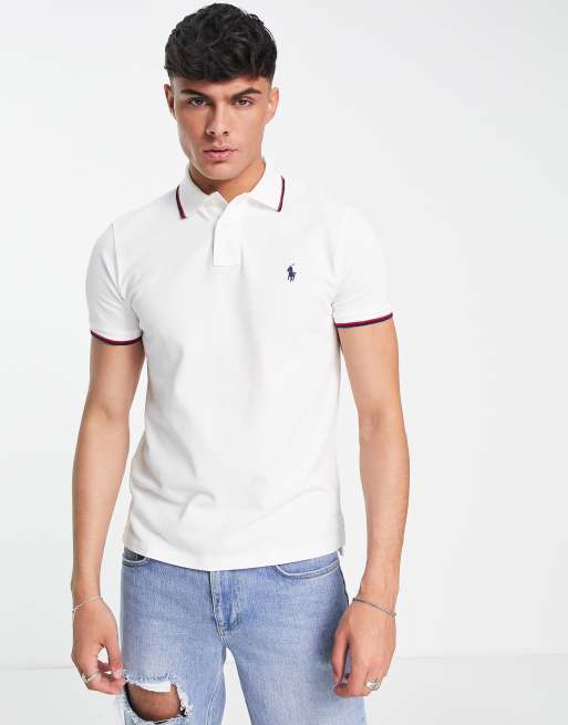 Polo Ralph Lauren icon logo tipped slim fit pique polo in white
