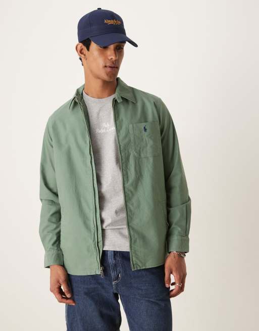 Polo Ralph Lauren icon logo zip front garment dyed oxford overshirt in light green