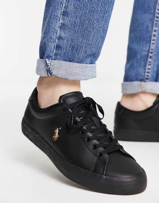 Polo Ralph Lauren leather longwood trainer in black with pony logo
