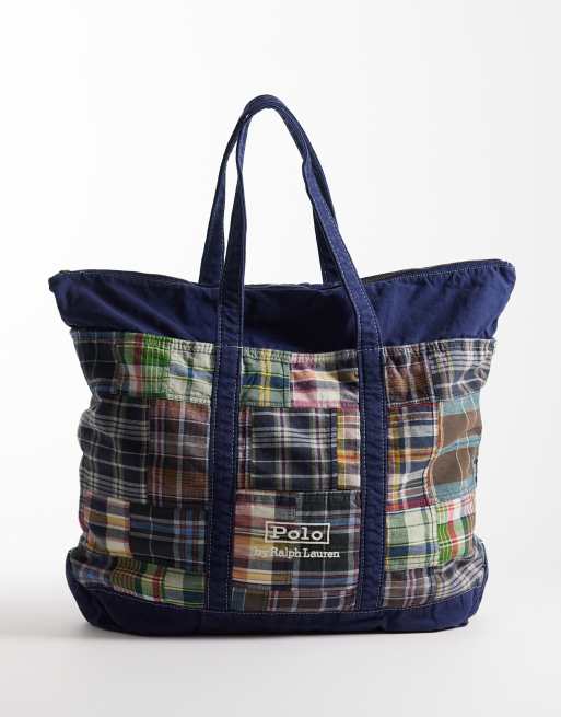 Polo Ralph Lauren Madras patchwork tote bag in navy multi