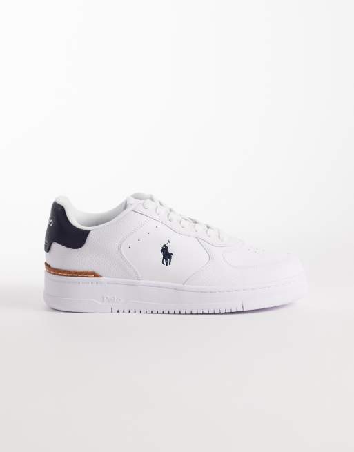 Polo Ralph Lauren masters court leather trainers in white and navy
