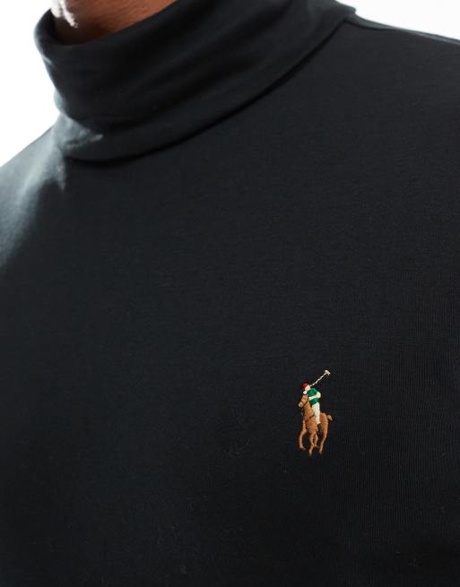Polo Ralph Lauren multi icon logo roll neck long sleeve top in black