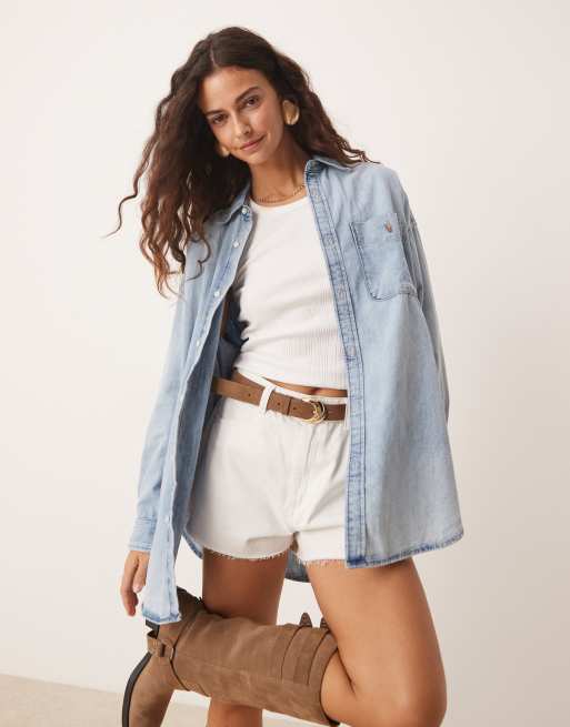 Polo Ralph Lauren oversized drop hem denim shirt in light blue