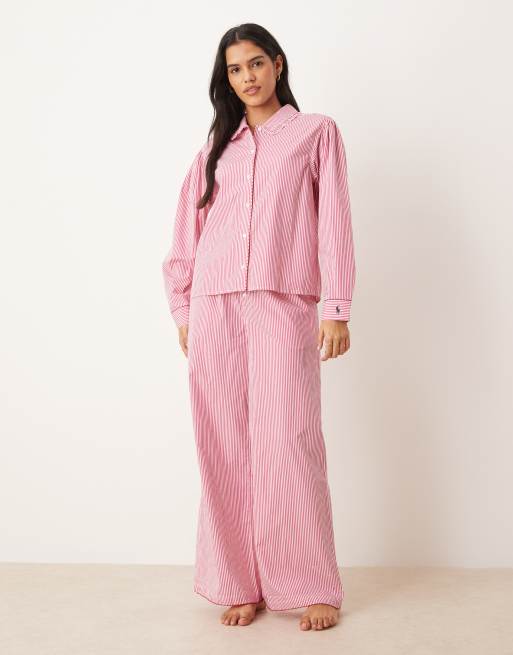 Polo Ralph Lauren Pyjama set with wip stitch in college pink x white cloud