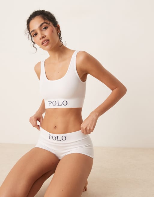 Polo Ralph Lauren Ribbed seamless scoop tankbralette & shortie in white
