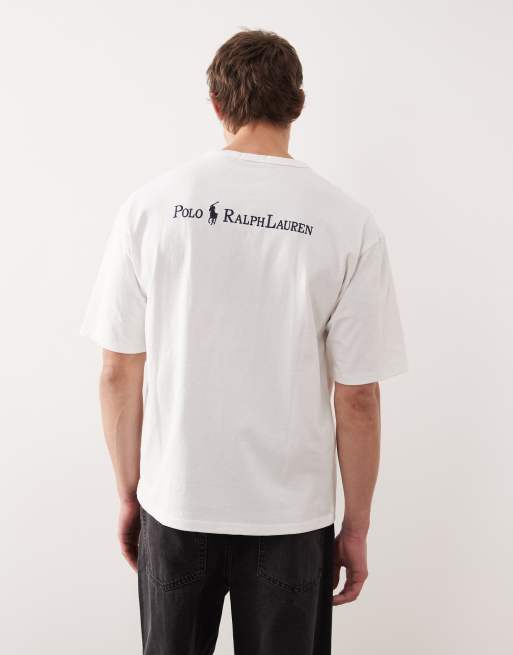 Polo Ralph Lauren script player logo back print heavyweight relaxed fit t-shirt in off white