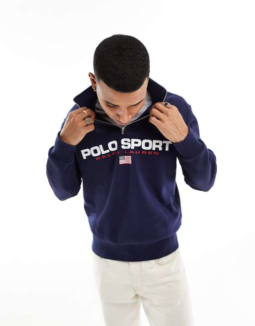 Polo Ralph Lauren Sport capsule retro flag logo half zip sweatshirt in navy